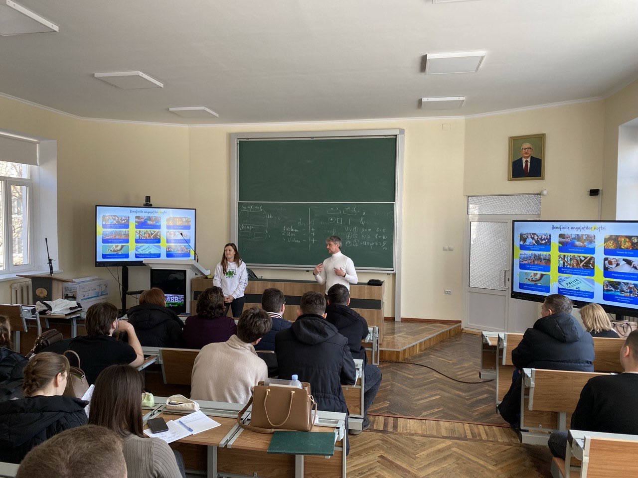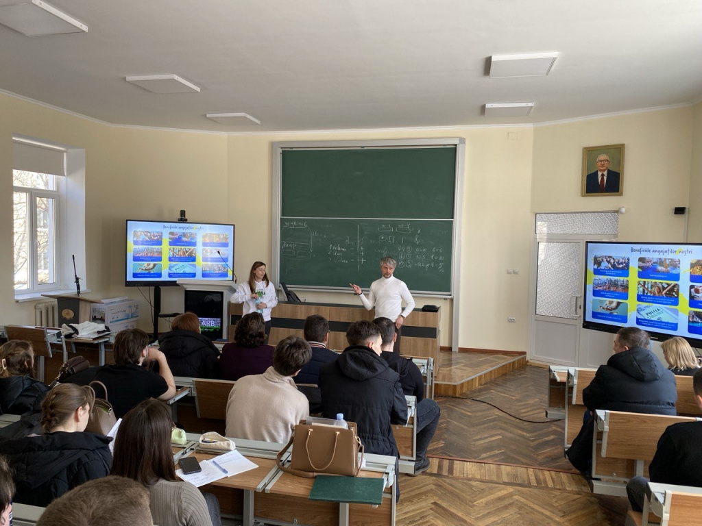 Activitatea a fost susținută de domnul Serghei Elinic, HR Business Partner, și doamna Rodica Izman, Talent Acquisition Chief, care au prezentat studenților perspectivele de dezvoltare profesională în cadrul companiei, oportunitățile de angajare pentru tineri specialiști, precum și competențele și abilitățile solicitate pe piața contemporană a muncii.