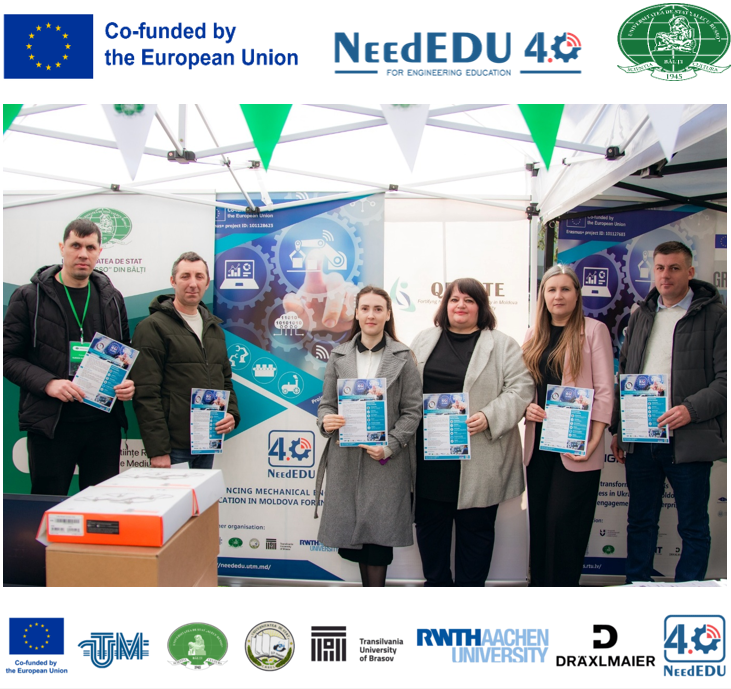 Echipa USARB de implementare a proiectului NeedEDU4.0, împreună cu U.C.S. DRA DRAEXLMAIER AUTOMOTIVE S.R.L – beneficiar NeedEDU4.0, a prezentat în cadrul evenimentului proiectul Enhancing Mechanical Engineering Education in Moldova for Industry 4.0 (NeedEDU4.0). Elevii de liceu, studenții din anii terminali ai ciclului de licență și ceilalți participanți au primit materiale promoționale referitoare la proiect, inclusiv informații despre implementarea programului de master interuniversitar „Industrii Smart și Transformarea Digitală” (120 ECTS), precum și despre contribuția proiectului la modernizarea educației inginerești în Republica Moldova, prin introducerea unor metode moderne de predare, dezvoltarea infrastructurilor digitale inovatoare și consolidarea cooperării dintre universități și mediul industrial.