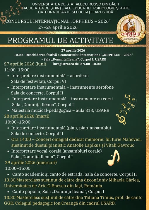 Concursului Internațional de Interpretare Muzicală „ORPHEUS – 2026”